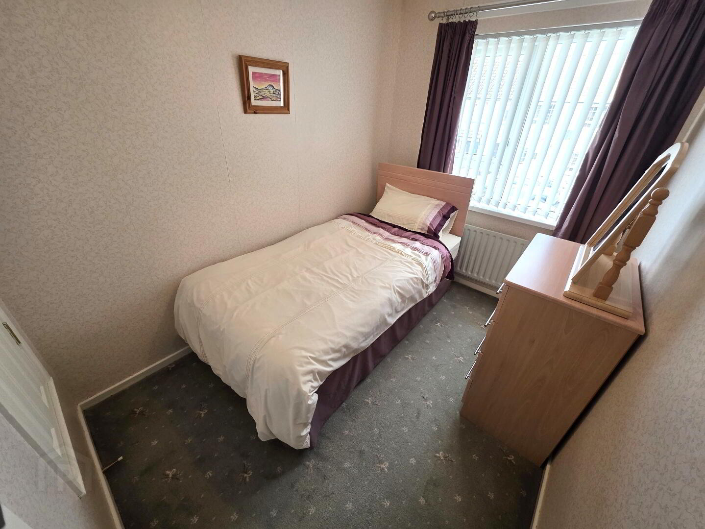 Carpeted, hot press, 1 window with vertical blinds, 1 radiator, power points