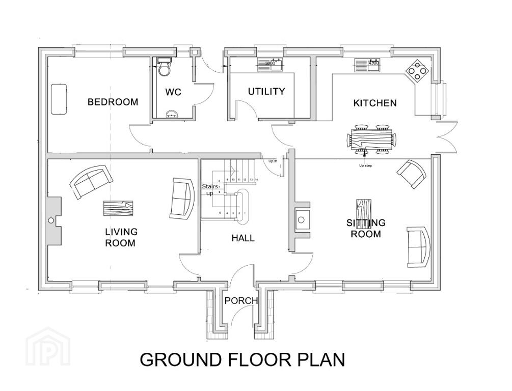 GROUND FLOOR - PORCH, HALL, LIVING ROOM, SITTING ROOM, KITCHEN, UTILITY, DOWNSTAIRS WC, BEDROOM 1