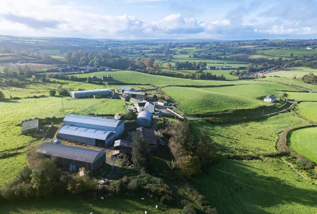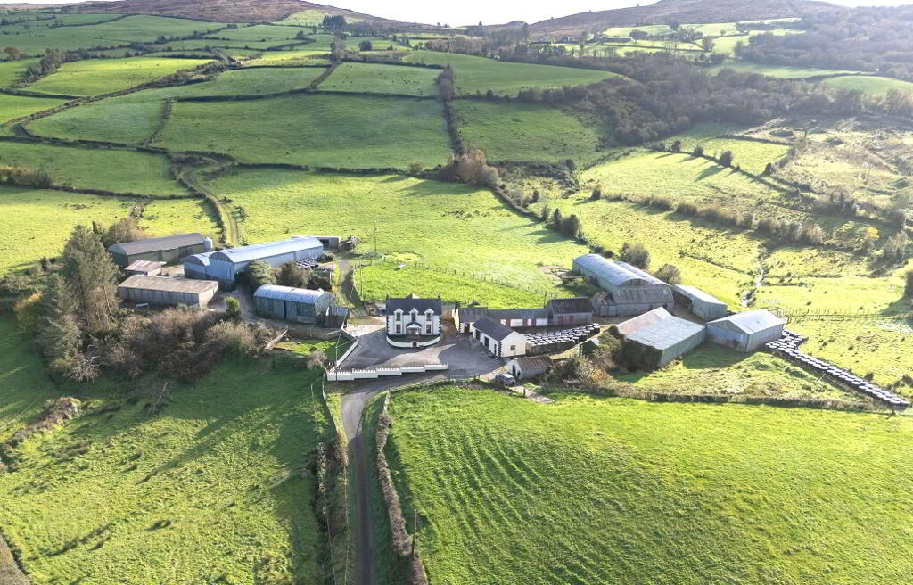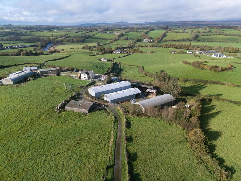 These quality agricultural lands are particularly well situated, equidistant between Omagh and Strabane and only 2.5 miles from Newtownstewart. This fertile area has always been renowned for its productive and above average land. Currently laid out in pasture, the majority of the fields are of a generous size with water readily available. The generous yard is divided by the dwelling house, is supplied with 3 phase electricity and consists of: 3 bay round roof general purpose shed, 6 bay silage pit, 5 bay round roof shed with adjoining shed (partly slated with cubicles), 4 bay slatted lean-to, crush, 1 bay lean-to, 5 bay round roof dry shed, 6 tonne meal bin, calf/heifer shed with cubicles, sheep pens and dipper, double garage block with office to side (7.6m x 5.11m) with manual roller doors, former meal shed/store, apex roofed 5 bay shed with lean-to and adjoining outhouse, general purpose 3 bay shed x 2, 5 bay round roof cubicle shed with outside slatted area, 6 bay round roof silage pit, shed (former milking parlour) and range of general-purpose farm outhouses.