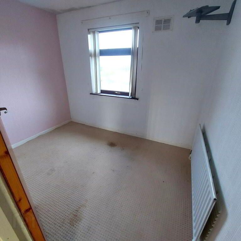 Carpeted, built-in shelving and hot press, fireplace, 1 window with vertical blinds, power points, 1 radiator