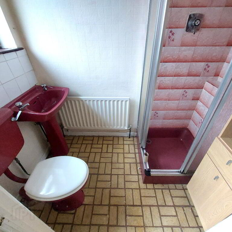 Tiled floor, WC, wash hand basin, tiled shower cubicle, 1 window, 1 radiator