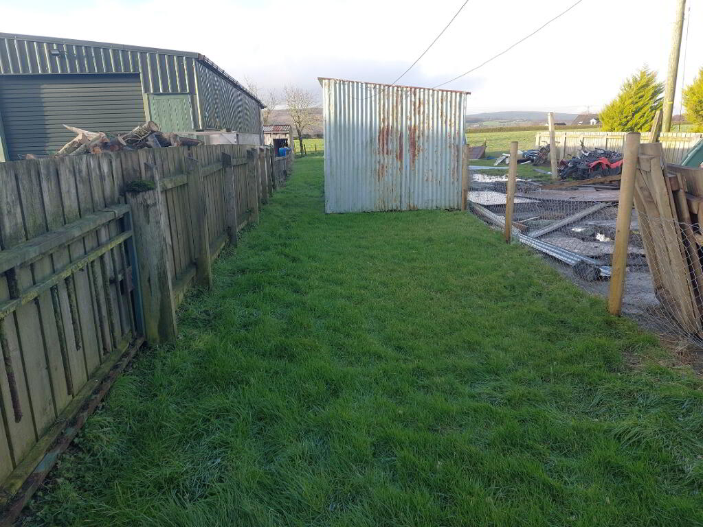 Enclosed garden to front, enclosed rear yard with shed and outhouse (plumbed for washing machine), garage and small shed to rear with small paddock / allotment