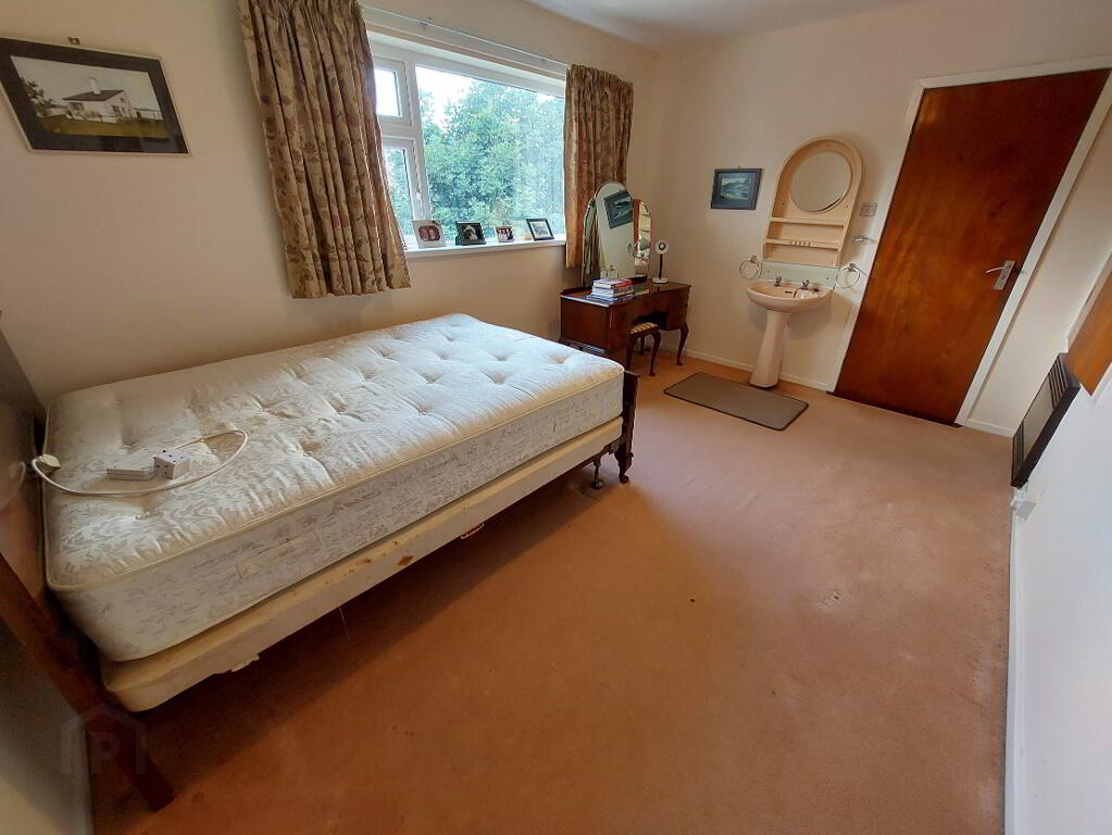 Carpeted, built-in wardrobe space, 1 electric heater, power point, door to: