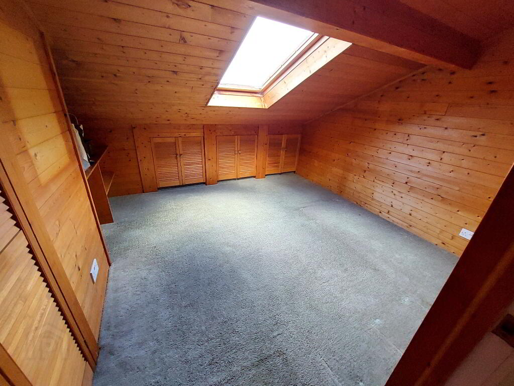 Carpeted, built-in wardrobe space, 1 Velux-style window, power points