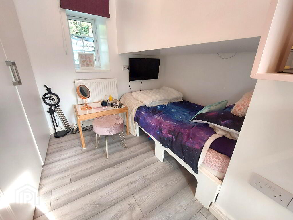 Laminate wooden floor, built-in wardrobe space, 1 window with roller blind, 1 radiator, power points, telephone point.