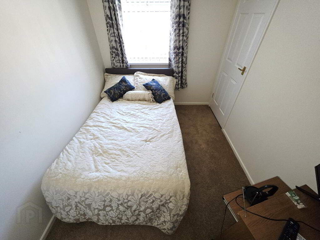 Carpeted, 1 window with vertical blinds, 1 radiator, 1 power points